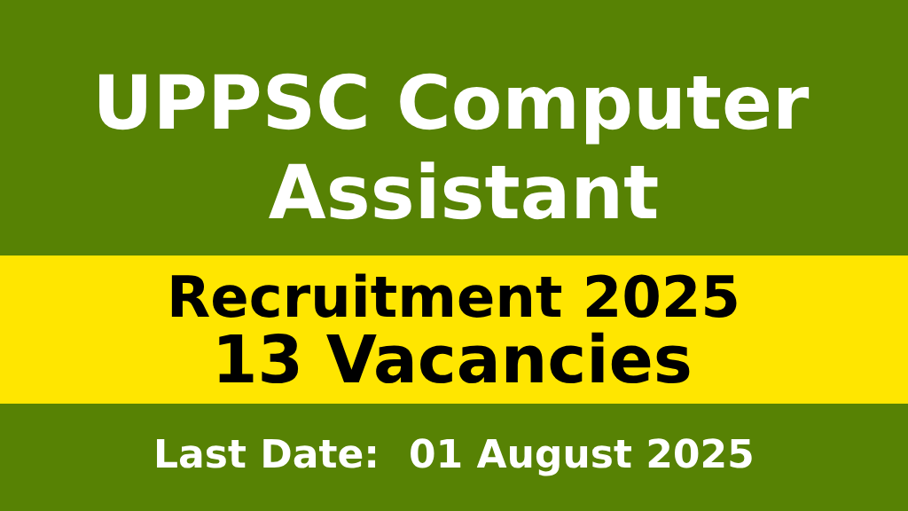 UPPSC Computer Assistant Recruitment 2025 Last Date 01 August 2025