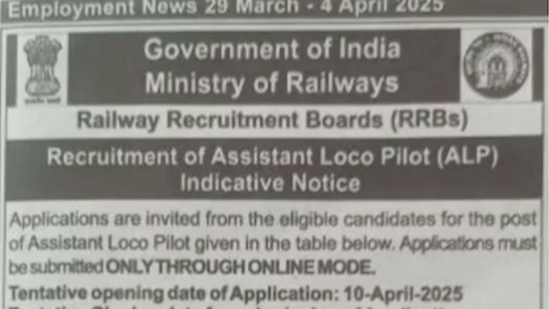 रेलवे भर्ती बोर्ड (RRB) ने असिस्टेंट लोको पायलट (ALP)...